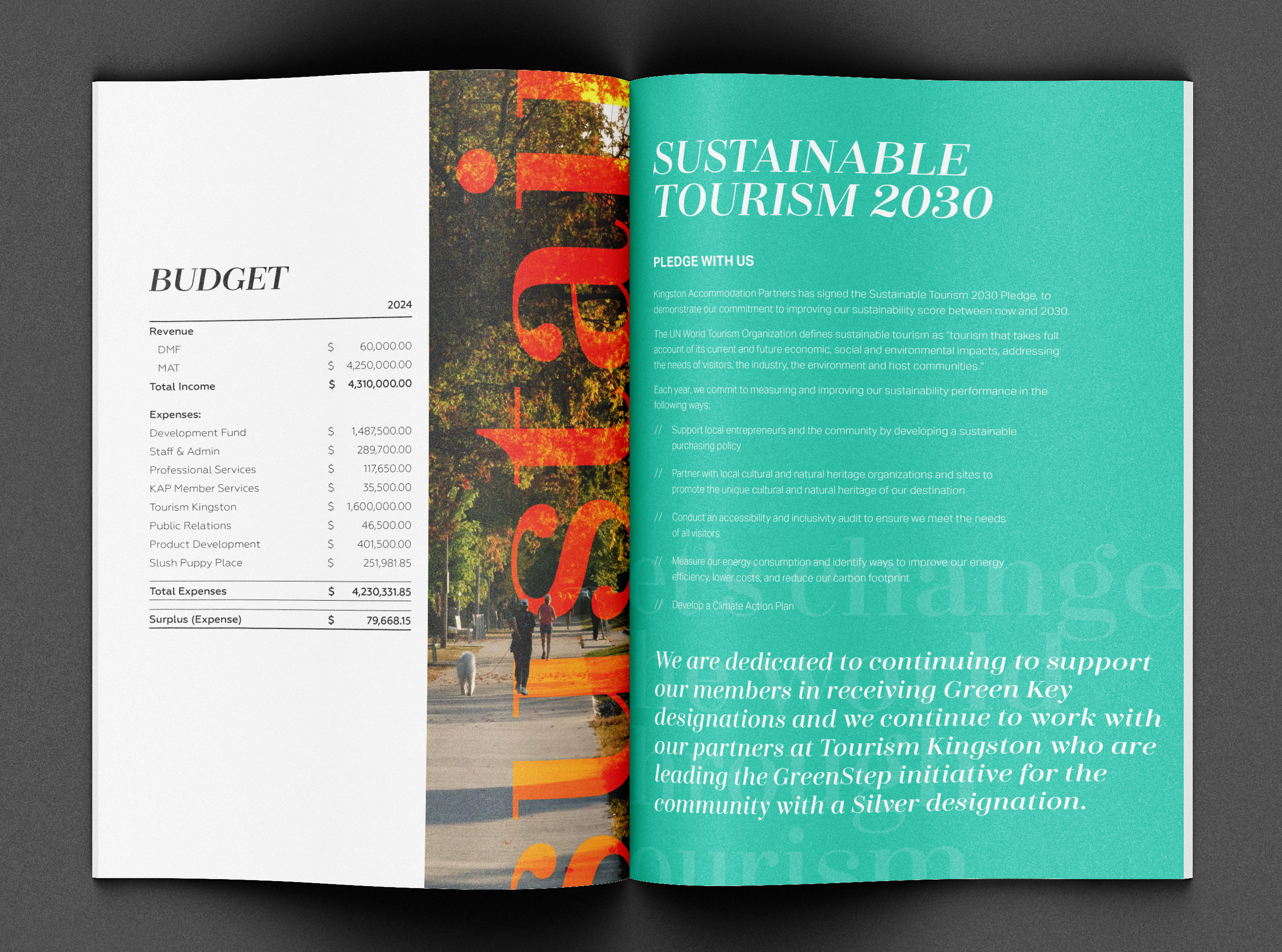 Developed comprehensive branding materials, including two Annual Plans, brochures and digital assets, to promote Kingston’s hospitality sector. Ensured consistency with existing brand guidelines while introducing fresh design elements to enhance visual appeal.