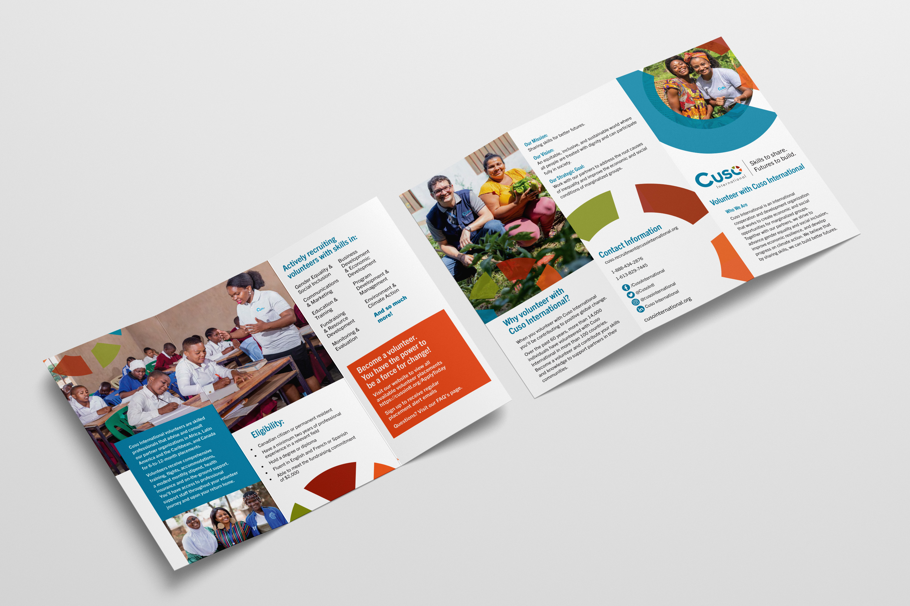 Designed branding and outreach materials for Cuso International, supporting Canadian international development initiatives. Projects encompassed brochures, social media graphics, and event materials, reflecting the organization’s mission and values.